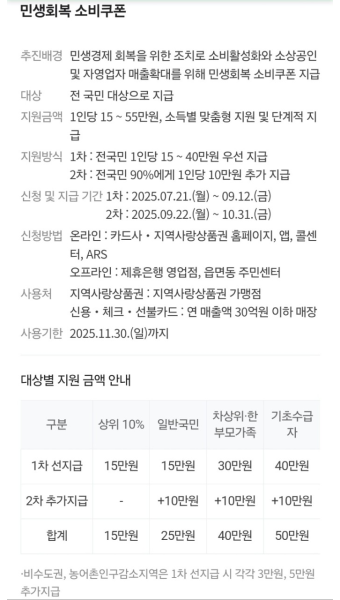 | 2025년 9월 22일 | 2차 민생회복 소비쿠폰 지급 시작 예정 (선별적 지급 전환) | 정부 계획 |